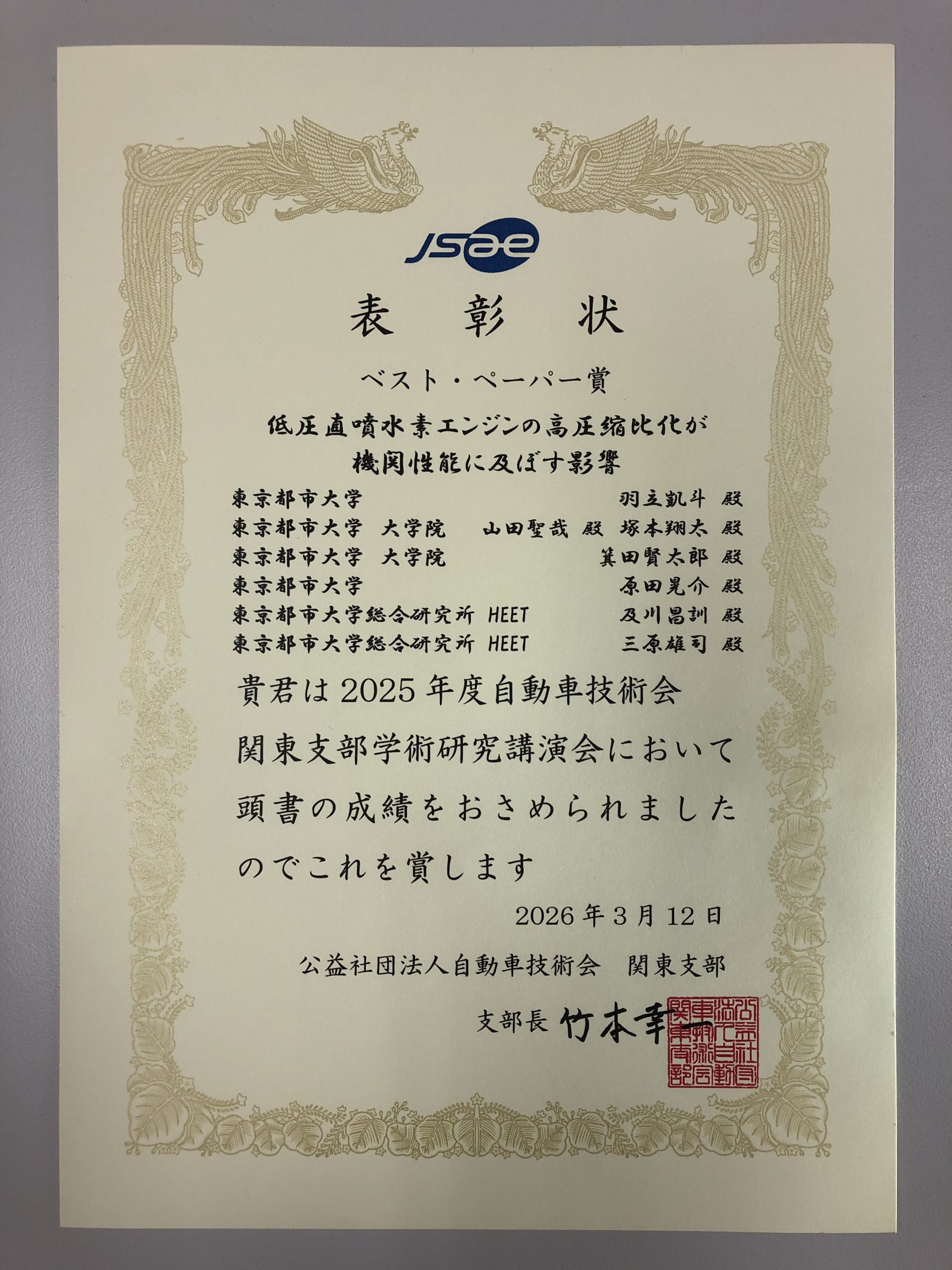 2025年度学術研究講演会(ICATYE)にて、内燃機関工学研究室 学部4年の羽立凱斗さんが